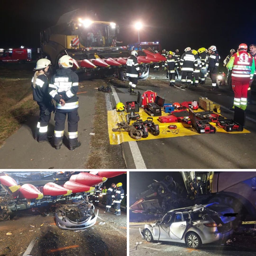Pkw kracht in Mähdrescher: Zwei Schwerverletzte