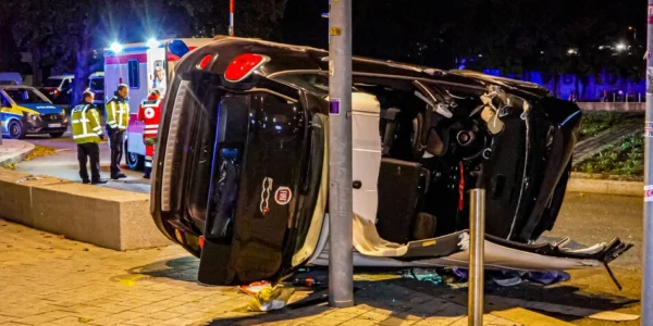Nächtlicher Unfall in Stuttgart: Fiat überschlägt sich, Beifahrerin verletzt