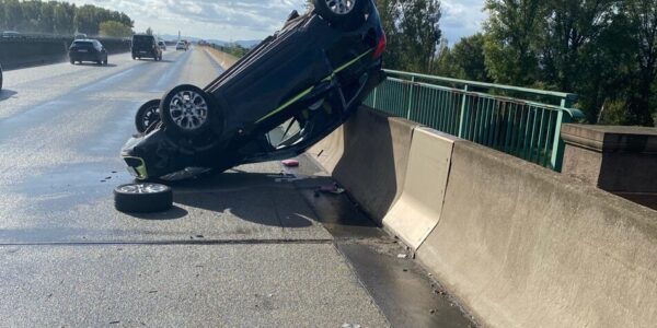Beinahe-Katastrophe: Auto überschlägt sich auf A6-Rheinbrücke