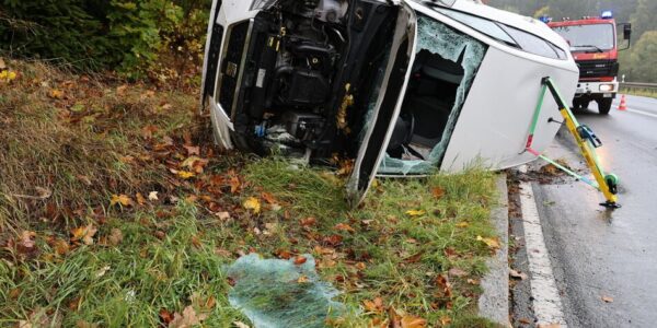 Zwei Kinder und Baby verletzt: Schwere Karambolage mit Wohnwagen-Gespann auf Bundesstraße