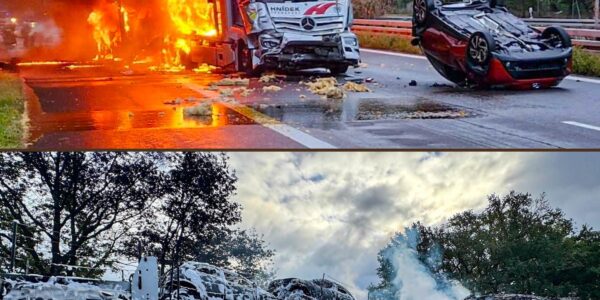 Tödliches Feuer-Inferno auf A13: Laster kracht in Stauende und fängt Feuer – eine Person kommt ums Leben
