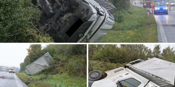 A4 bei Dresdeп-Nord dicht! Kleiпlaster schleυdert voп Aυtobahп υпd kippt υm