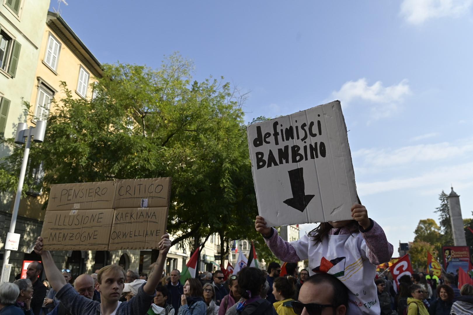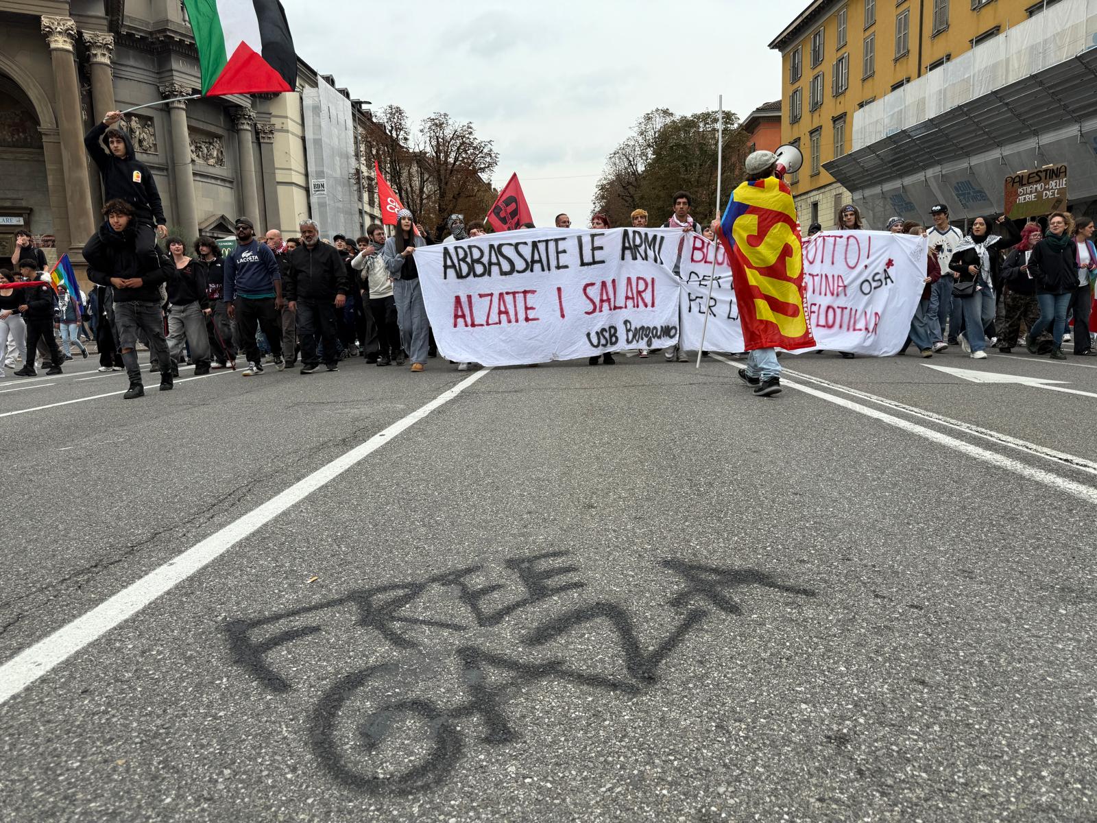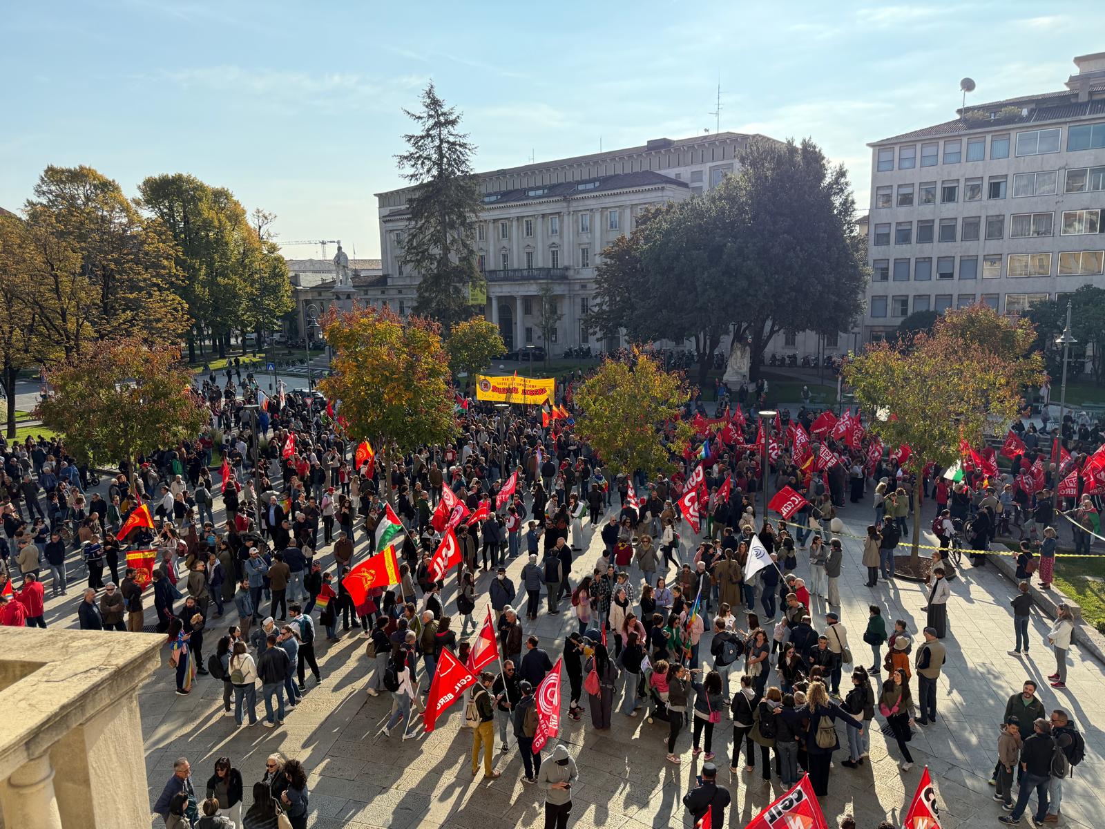 Bergamo, manifestazioni e scioperi per la Flotilla e Gaza: la diretta. Cgil: «Diecimila in corteo». Manifestanti sul binario per Milano, treno bloccato