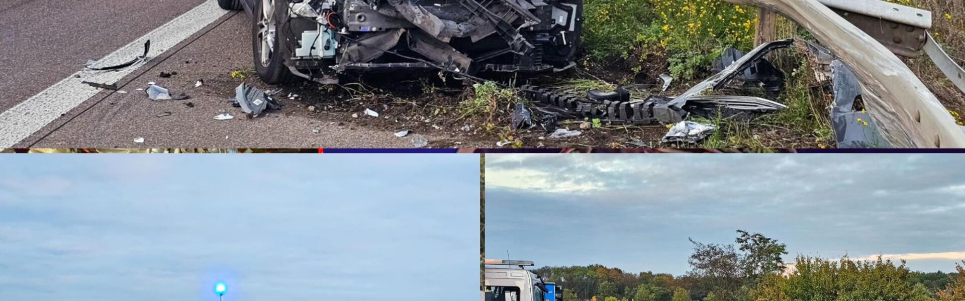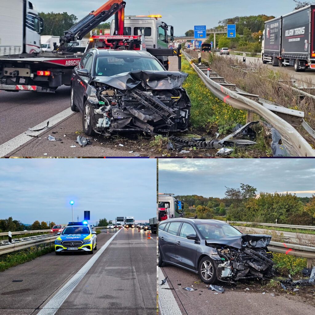 Nach Karambolage auf A5 bei Bruchsal in Leitplanken geschleudert: Auto kollidiert mit Lastwagen und wird in Leitplanken geschleudert