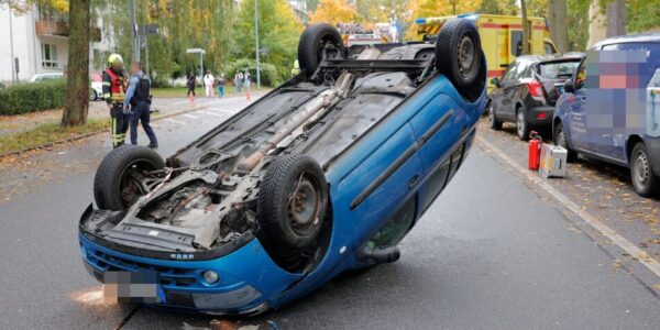 Unfall in Chemnitz: Auto landet auf dem Dach