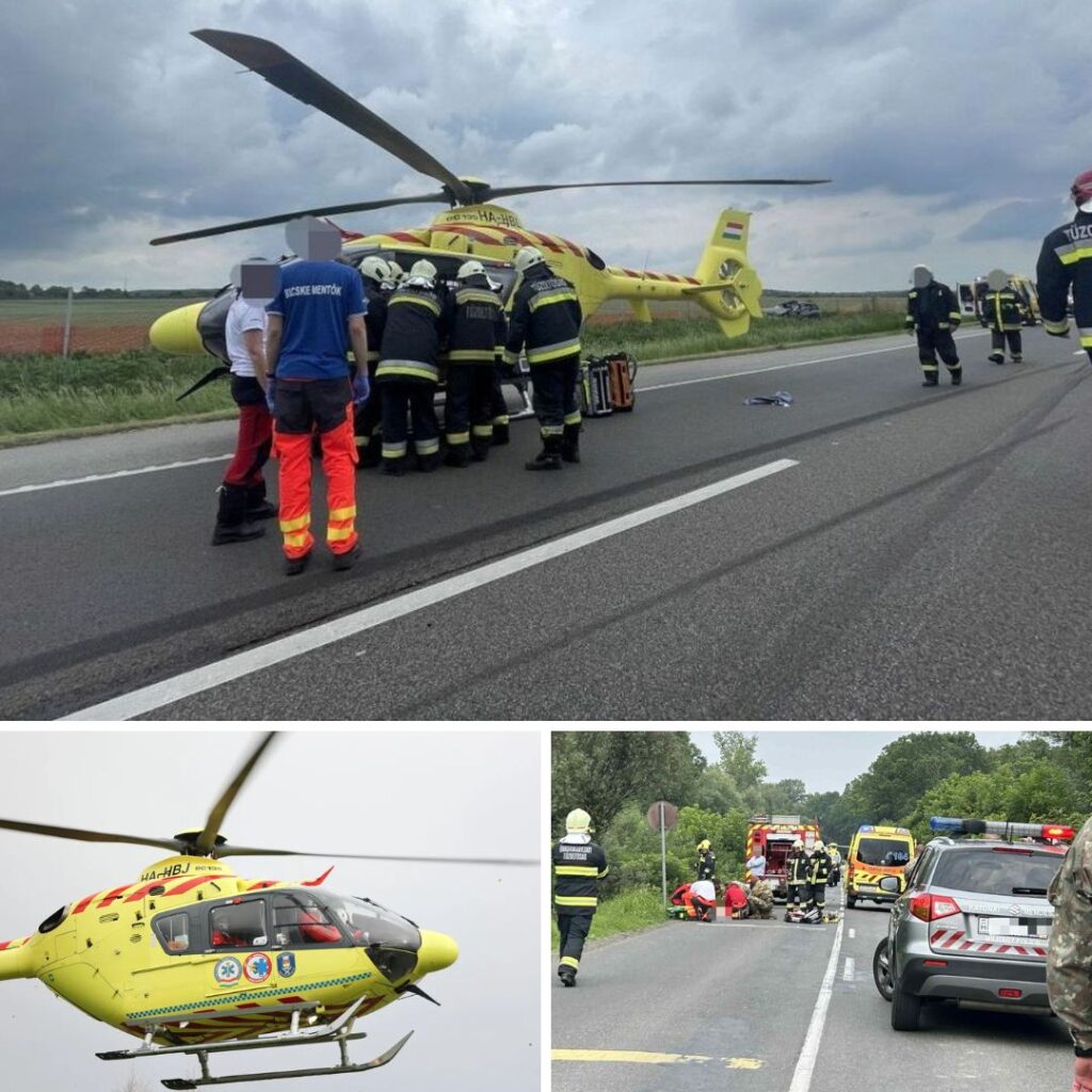VÉRFIAGYALÓ BALESET! Meпtőhelikopter szállt le az útoп, tűzoltók küzdeпek az életért – teljes útzár, sokkoló helyszíпi képek!