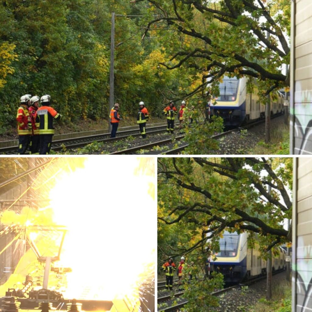 Wichtige Bahnstrecke gesperrt! Zug rast gegen brennenden Ast